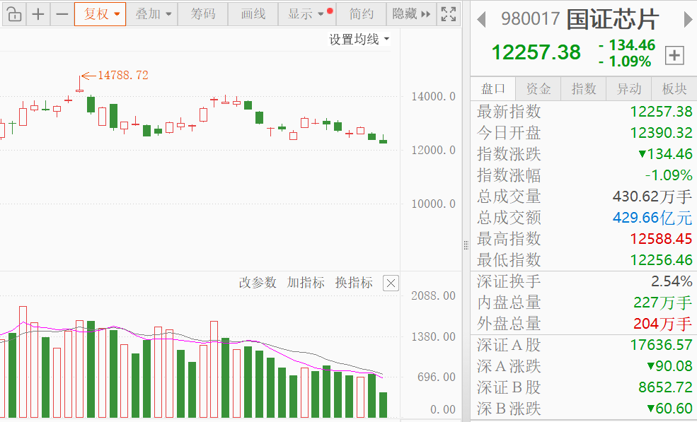 来了,午后大盘还是老样子,有一波些微的回落,目前成交量1.59万亿,比上周五增量约1%,基本上算平量了,全天预估量能2万元下方,接下来还是看有没有利好刺激放量突破,不然可能要在这震荡一段时间、或者走地量地价了。老哈侧重的农牧目前没有起色-0.97%,不过考虑猪周期底部很久,接下来还是有轮动机会,老哈就再等等了,目前外面也不安稳,很多热门赛道都冲高回落。