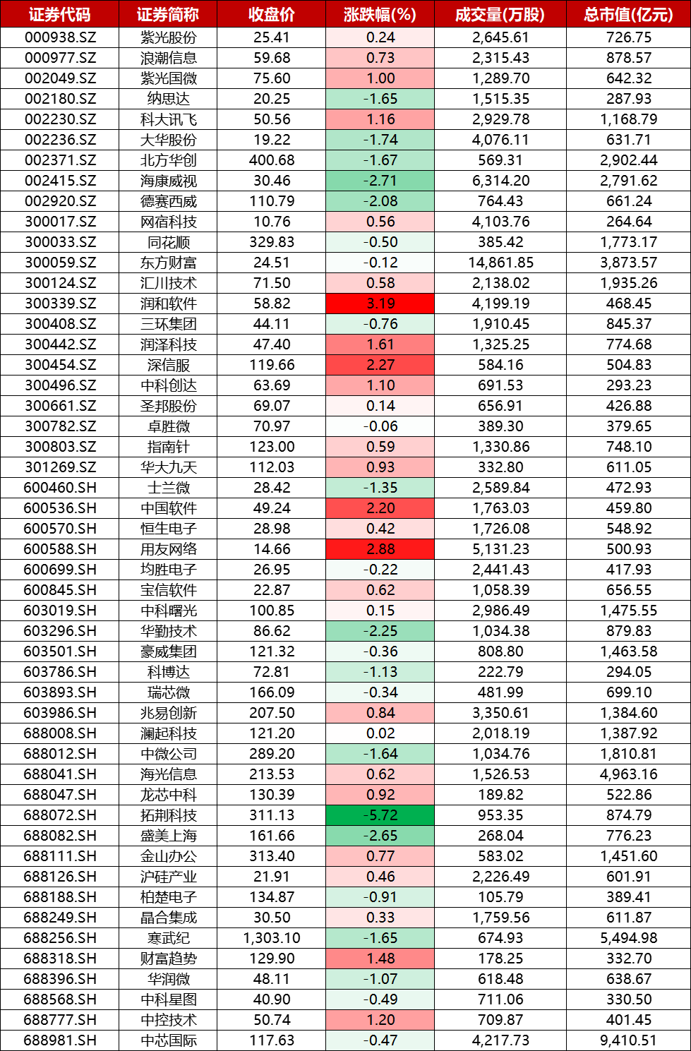 今日成分股润和软件、用友网络涨幅居前。