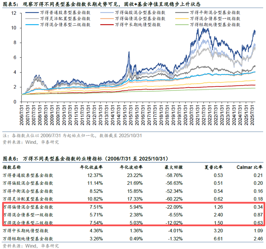 过去的19年间,市场经历了牛熊的转换与无数波折。然而,Wind数据显示,偏债混合型基金、二级债基、一级债基指数,依然分别取得了7.5%、7.5%和5.7%的年化收益率。