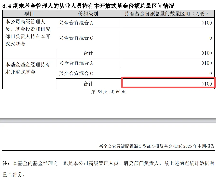 查询2025年基金中报,基金经理谢治宇本人持有该基金A类份额超100万份。