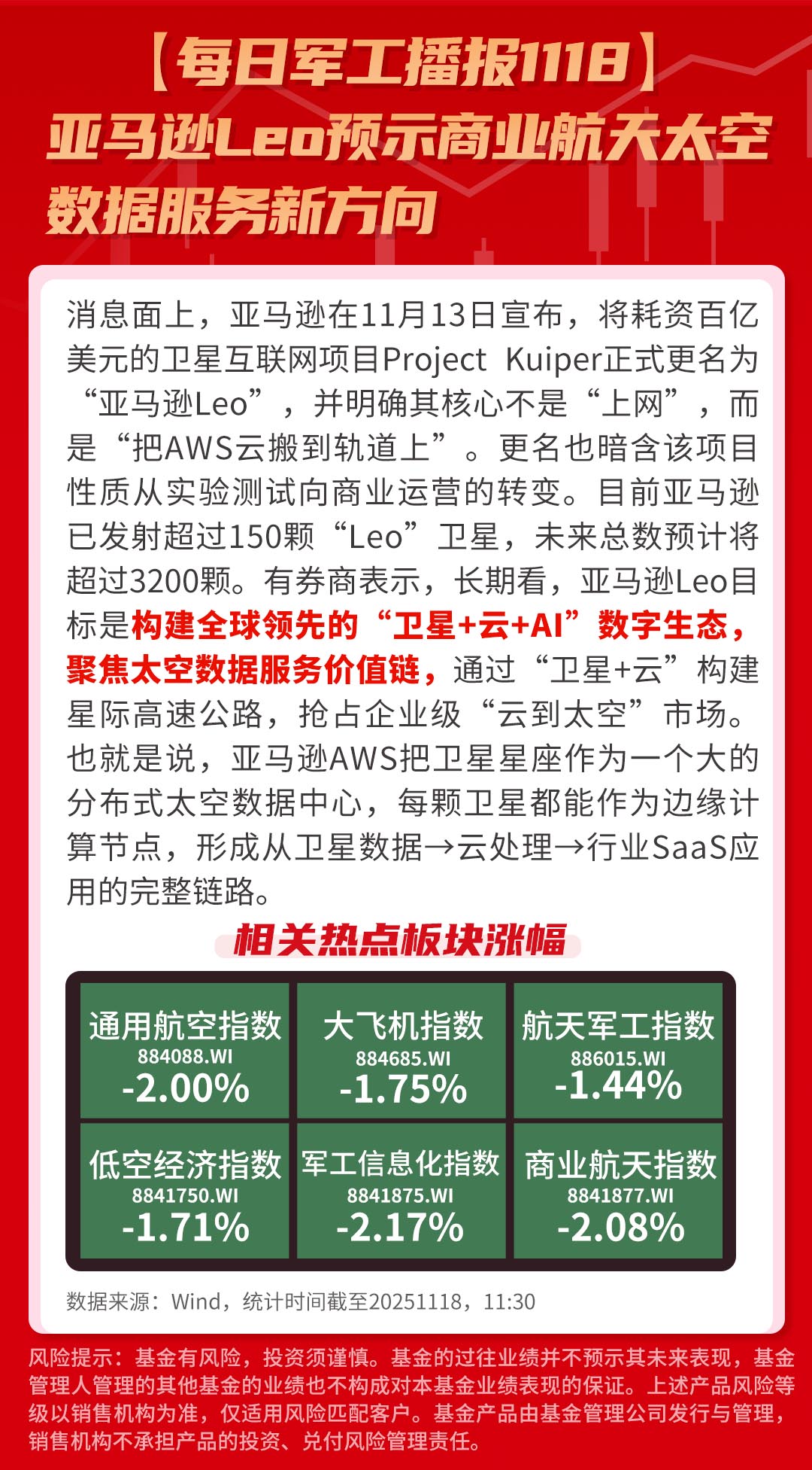 【每日军工播报1118】 亚马逊Leo预示商业航天太空数据服务新方向