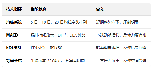 技术面结论:短期技术形态呈明显弱势,昨日反弹更像是对超跌的修复,今日补跌概率较高(约 60-70%)。