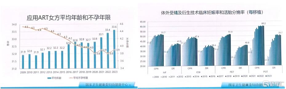 在此背景下,第三代试管婴儿(PGT)技术技术的价值愈发凸显,其2021年临床妊娠率(CPR)高达60.2,远超同期IVF(早期CPR:41.6)、ICSI(早期CPR:47.4)等技术的表现。PGT通过胚胎遗传学检测,有效规避了高龄导致的染色体异常风险,不仅大幅提升妊娠成功率,更在活胎分娩率(DR)维度为高龄患者提供了更可靠的生殖结局保障。这一趋势表明,伴随生育高龄化的发展,以PGT为代表的高龄化精准辅助生殖技术在市场中的需求将持续增长。