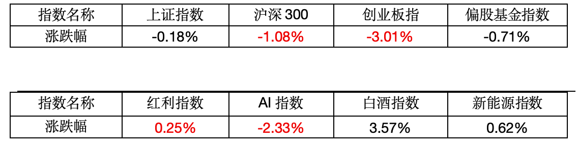 注:偏股基金指Wind偏股混合型基金指数(885001.WI),红利指中证红利指数(000922.CSI),AI指万得人工智能指数(884201.WI),白酒指万得白酒指数(884705.WI),新能源指万得新能源指数(884035.WI)