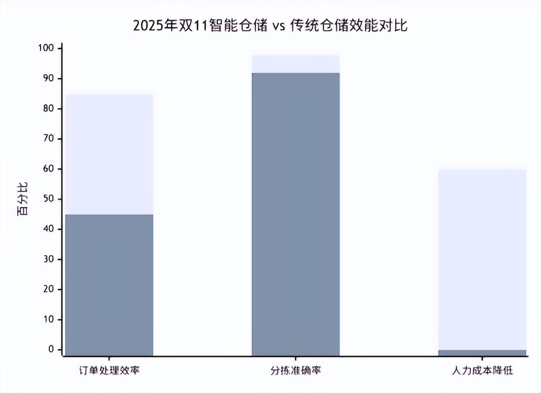 2025年"双11"大促,物流科技实现从"技术试点"到"全链路规模化落地"的跨越,智能仓储、无人配送、绿色技术等领域的应用,使全行业自动化覆盖率超96%,24小时达服务占比提升至92%,物流成本平均降低18%,碳排放量下降25%,成功应对142.8亿件快件洪峰的考验。