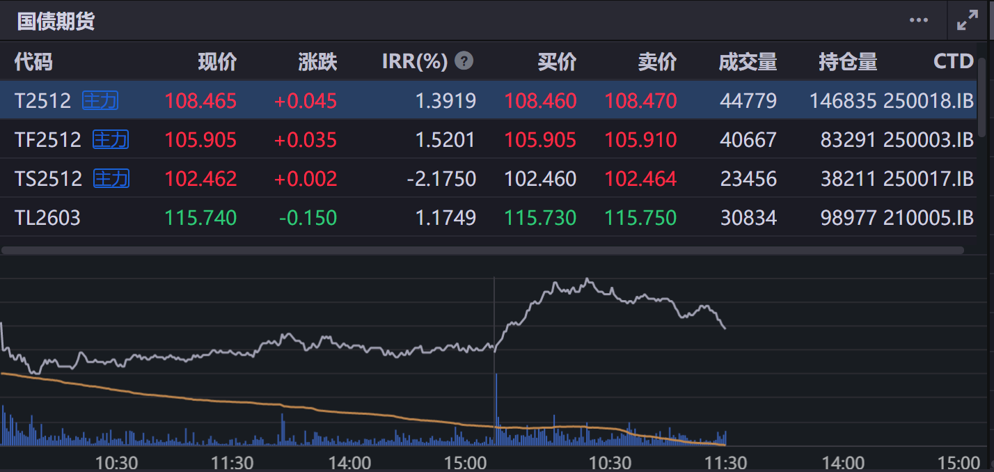 国债期货震荡下行