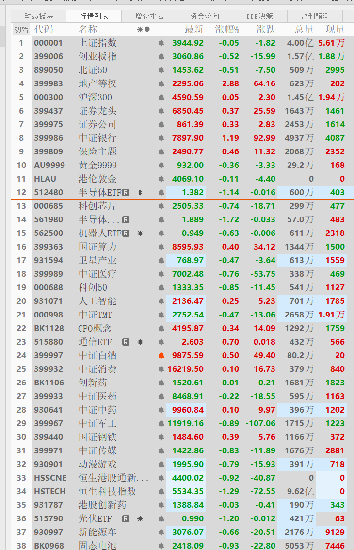 有色稀土 有色化工大龙先继续拿好等涨。黄金白银 黄金大龙已经全部盈利清仓,大龙暂时不动。半导体芯片人工智能计算机算力科技 半导体芯片已经跌很久了, 短期还是震荡,大龙继续观望。CPO通信 CPO通信大龙10月底已经减仓,现在跌到低位,大龙低吸一部分能源车光伏锂矿、固态电池、储能 周五大龙盈利减了光伏, 短期已经涨很多了,大龙继续 止盈部分,短期新能源光伏等已经涨太多了,大龙继续坚持的思路为主。 机器人 机器人大龙先观望等涨,短期依旧没什么行情。白酒消费 白酒短期也没什么行情, 只会有超跌反弹而已。 传媒动漫游戏 传媒动漫大龙暂时不动先,暂时没什么行情, 银行 今天A股下跌,那红利就会涨,红利大龙继续长期持有看涨