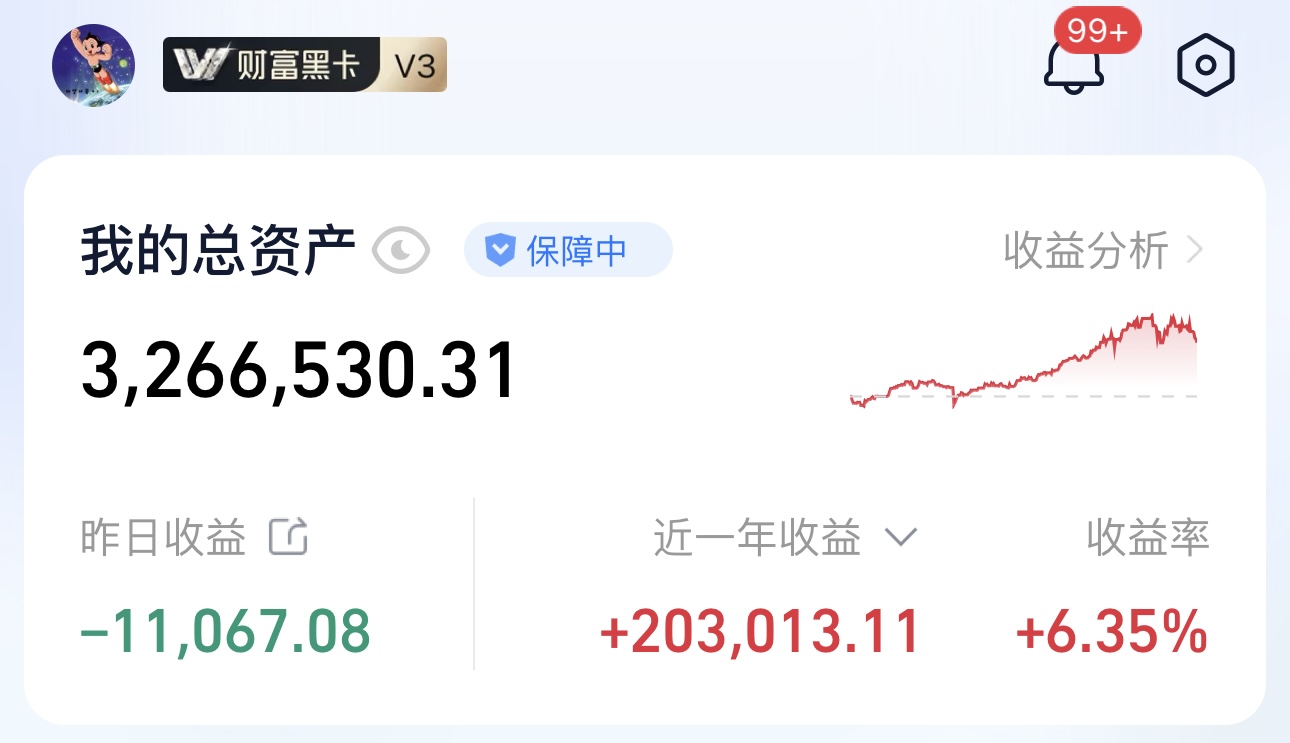每日收益更新:今天是我理财投资以来亏得最多的一次,估计亏了56208元,有一种欲哭无泪的感觉,我理财近10年了,第一次感到这么憋屈!具体盈亏目前还没完全更新完毕,明天早上我再完全公布。近一年赚了200000左右,战胜97.88%的财友。每天更新最新收益,实盘就在这里晒,主打的就是一个真实!