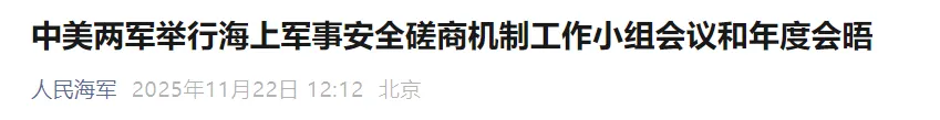 11月18日至20日,中美两军在美国夏威夷举行2025年度中美海上军事安全磋商机制第二次工作小组会议和年度会晤。双方以两国元首重要共识为引领,在平等和尊重的基础上,进行了坦诚、建设性交流,主要就当前中美海空安全形势交换了意见,探讨了两军海空相遇典型案例,评估了《中美海空相遇安全行为准则》年度执行情况,讨论了改进中美海上军事安全问题的措施,并就2026年工作小组会议议题交换了意见。