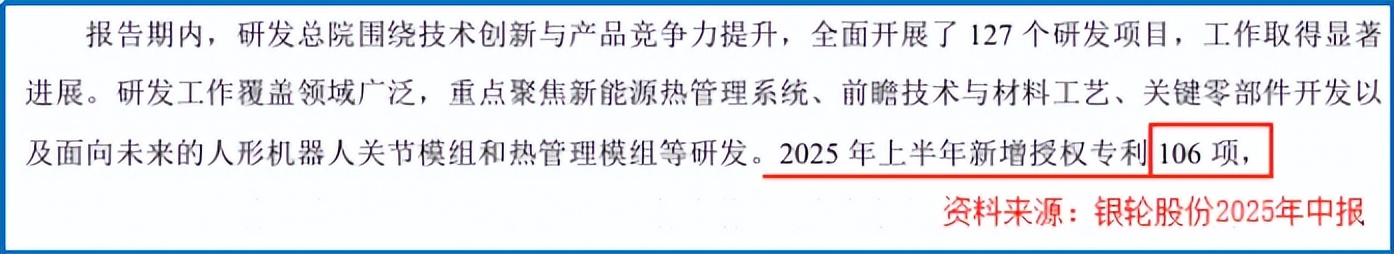 这种专注,也让银轮股份的技术底蕴格外扎实。截至2025年上半年末,公司专利数量合计1047个,其中仅报告期内新增的就有106项。