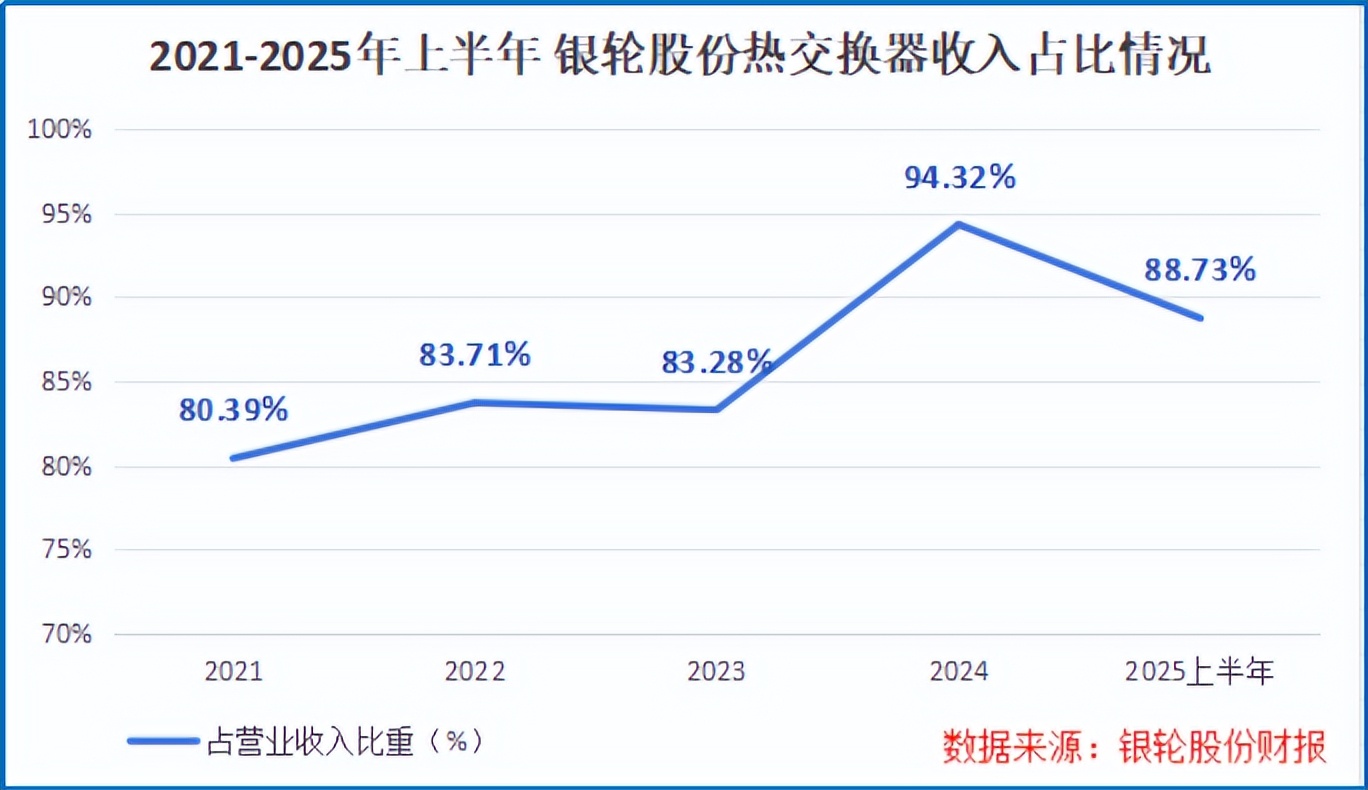 而银轮股份则走的是“深度挖井”路线,公司营收大头一直被热交换器这一拳头产品所占据,2024年占比甚至接近95%。