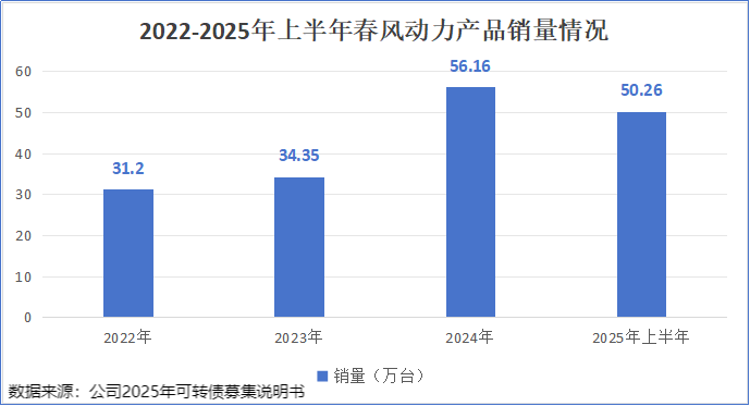 近年来,春风动力的产品不断放量,2025年上半年,实现销量50.26万台,接近2024年全年水平。