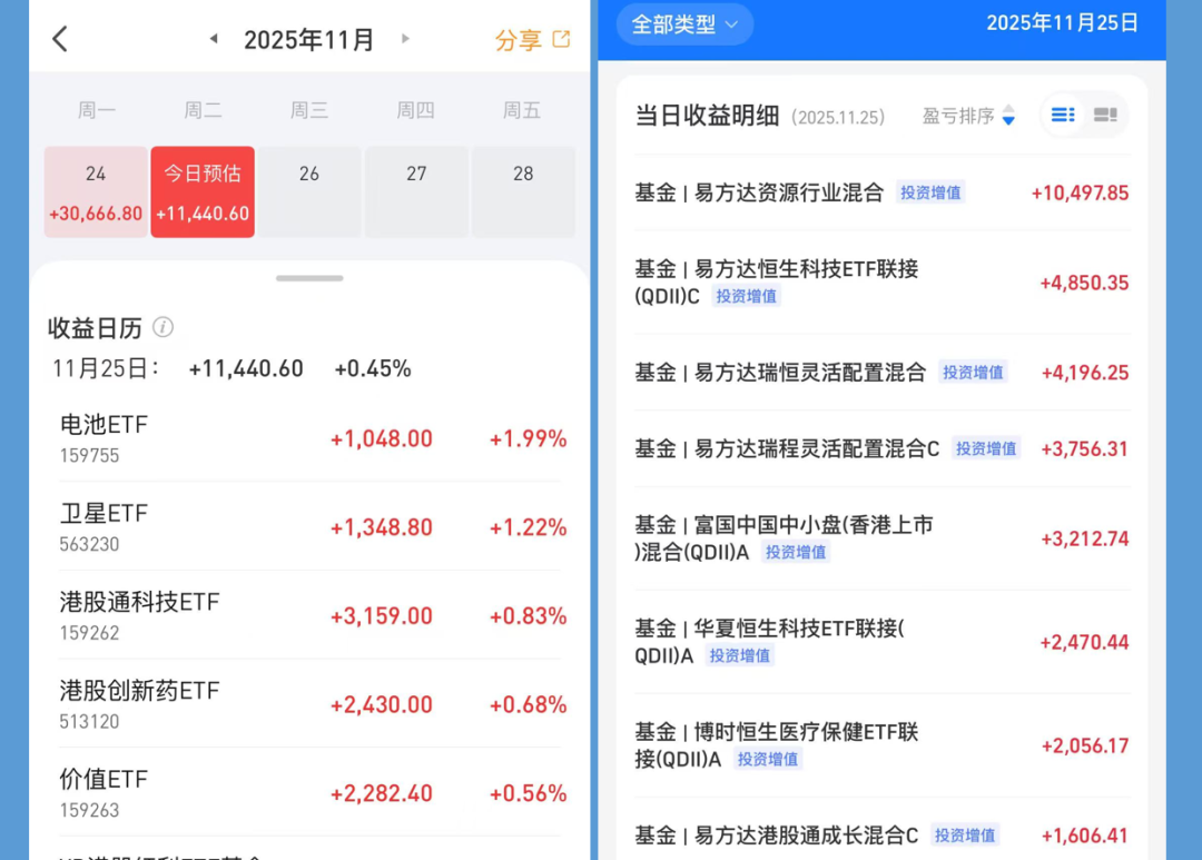 到了11月,市场又因为“AI泡沫”、“地缘政治风险”,还有“美联储12月降息概率下降”这些事儿接着回调。说是“全面回调”,可我重仓的恒生科技和港股创新药本来就跌了一波,这回等于又被暴击了一次。
