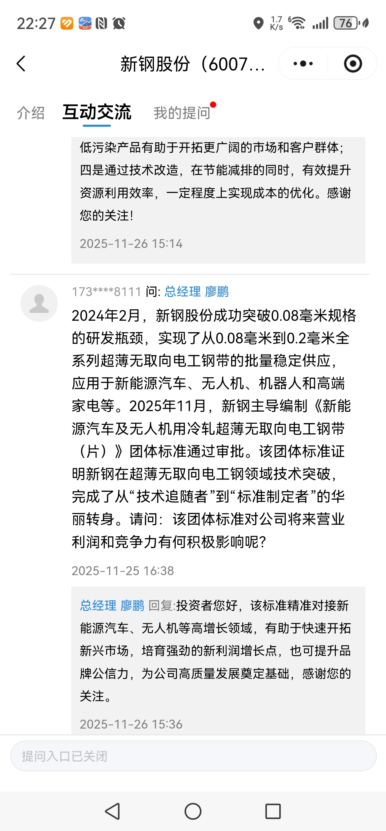 $新钢股份(SH600782)$ 新钢股份互动交流提问