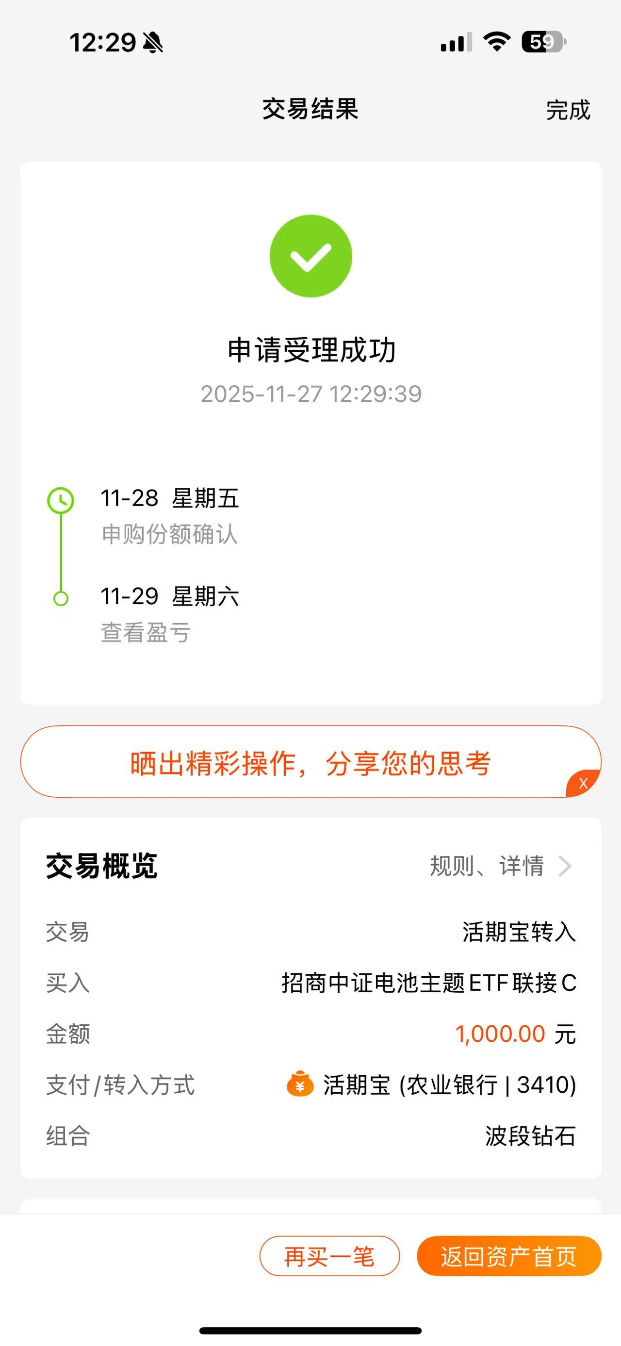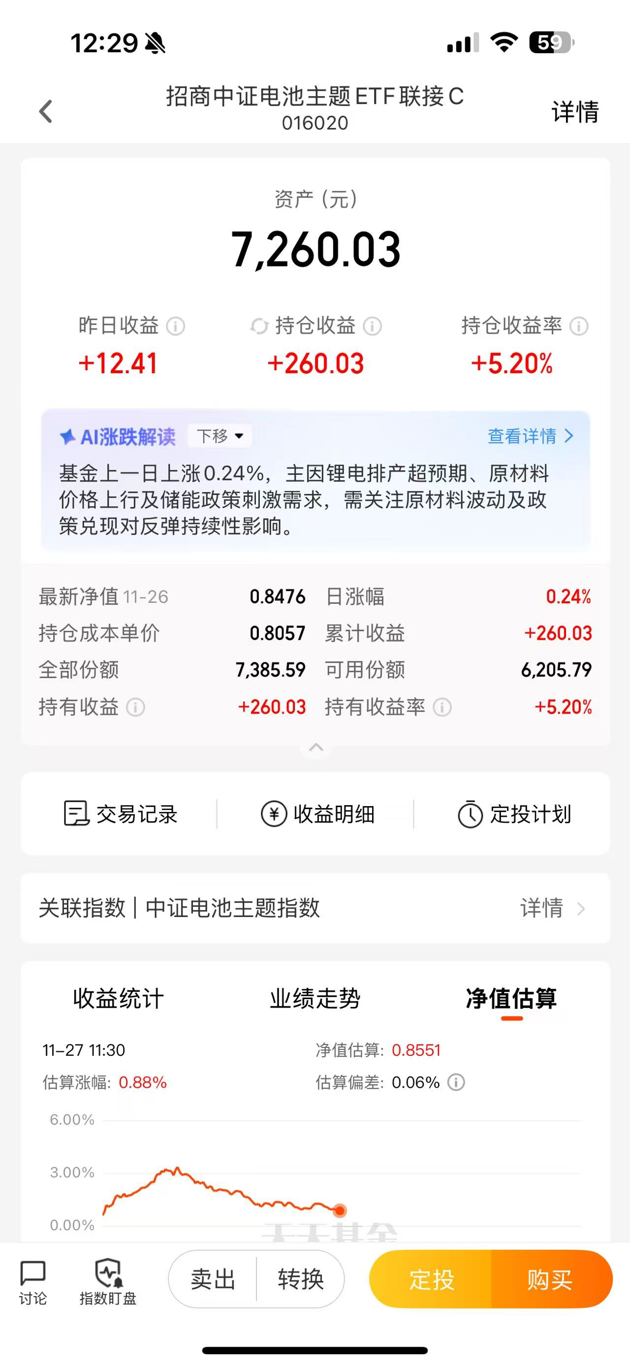 别看今年电池涨了不少,只要结合起当下的预期,至少未来1年中,电池的上涨空间依然是巨大的。正好前期电池又跌了不少,现在市场再次出现短期拐点,我要继续做大做强!顺势加仓1000元$招商中证电池主题ETF联接C(OTCFUND|016020)$基金,这已经是我第七次加仓了,我对这只电池基金的体验感还是很不错的,目前累计收益虽然只有5个多点,但是我相信,电池的空间依然很大,这一波我势必要坐稳了!