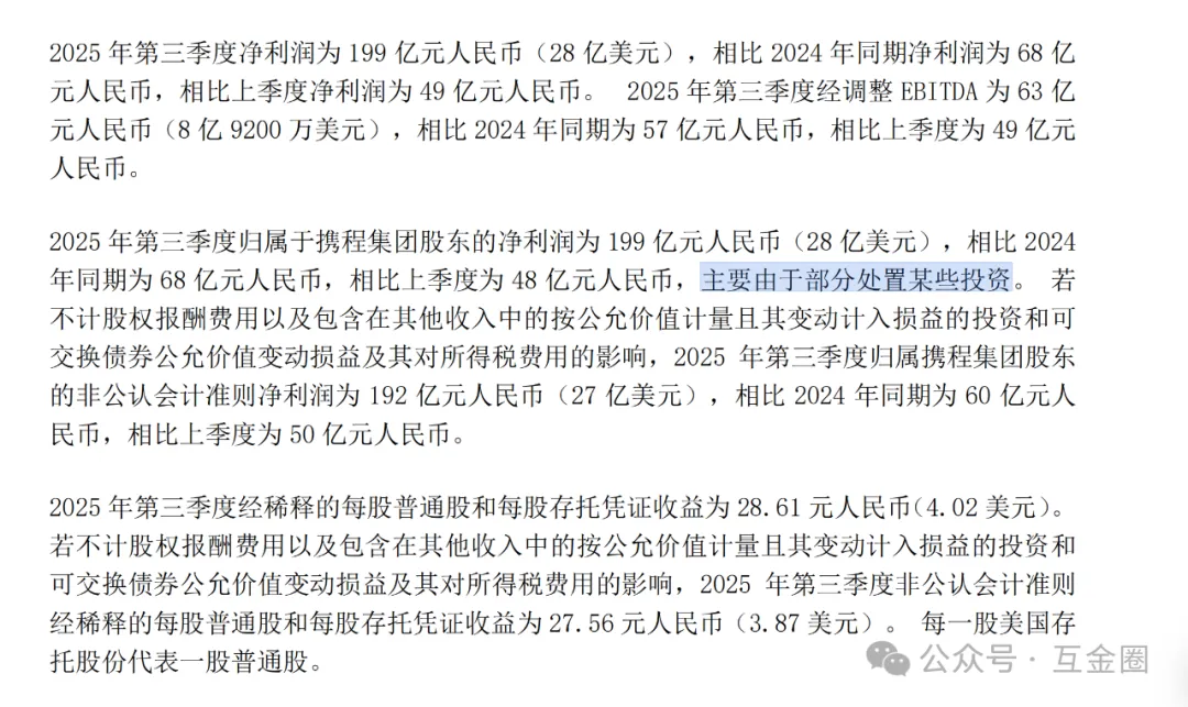 需要注意的是,携程Q3净利润核心增量不可持续,未来季度利润或将回归常态。