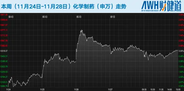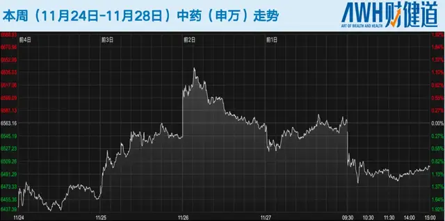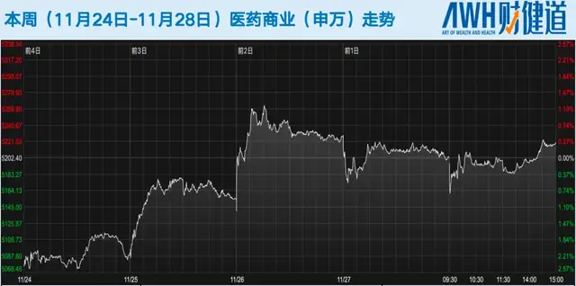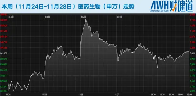 本周(11月24日-11月28日)医药生物(申万)指数从11月24日的8211.14涨至11月28日收盘的8430.13。