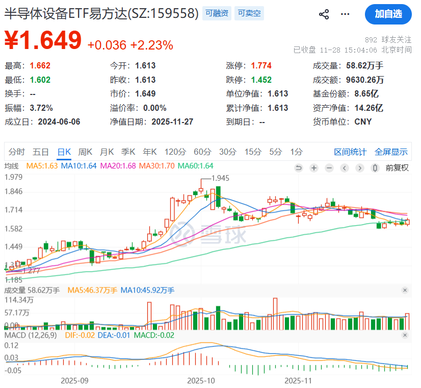 有研究报告给出预测,2025年全球晶圆代工营收有望达到1994亿美元,同比增长超25%,2025~2030年的复合增速预期也有14.3%,在AI带动下,半导体行业的景气度有望延续,今天半导体基金涨幅靠前,半导体设备ETF、半导体材料ETF都涨了2个点以上。