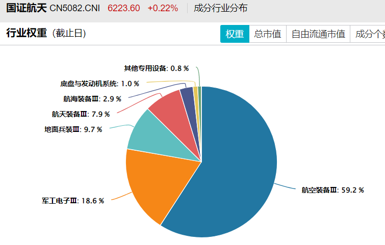 有一个专门的航空航天指数——国证航天,成分股有50只,囊括了航空装备、军工电子、材料等领域的龙头。
