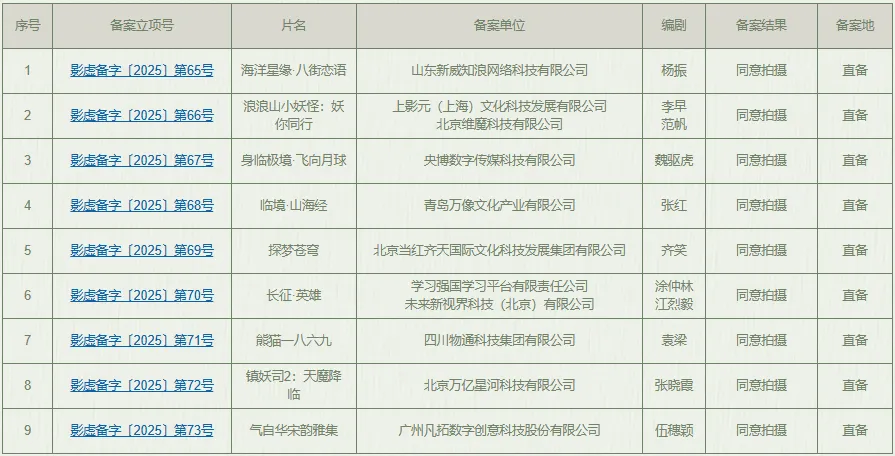 从通知内容可知,此次共有9个虚拟现实影片项目成功通过备案并完成立项,分别是:海洋星缘·八街恋语、浪浪山小妖怪:妖你同行、身临极境·飞向月球、临境·山海经、探梦苍穹、长征·英雄、熊猫一八六九、镇妖司2:天魔降临、气自华宋韵雅集。