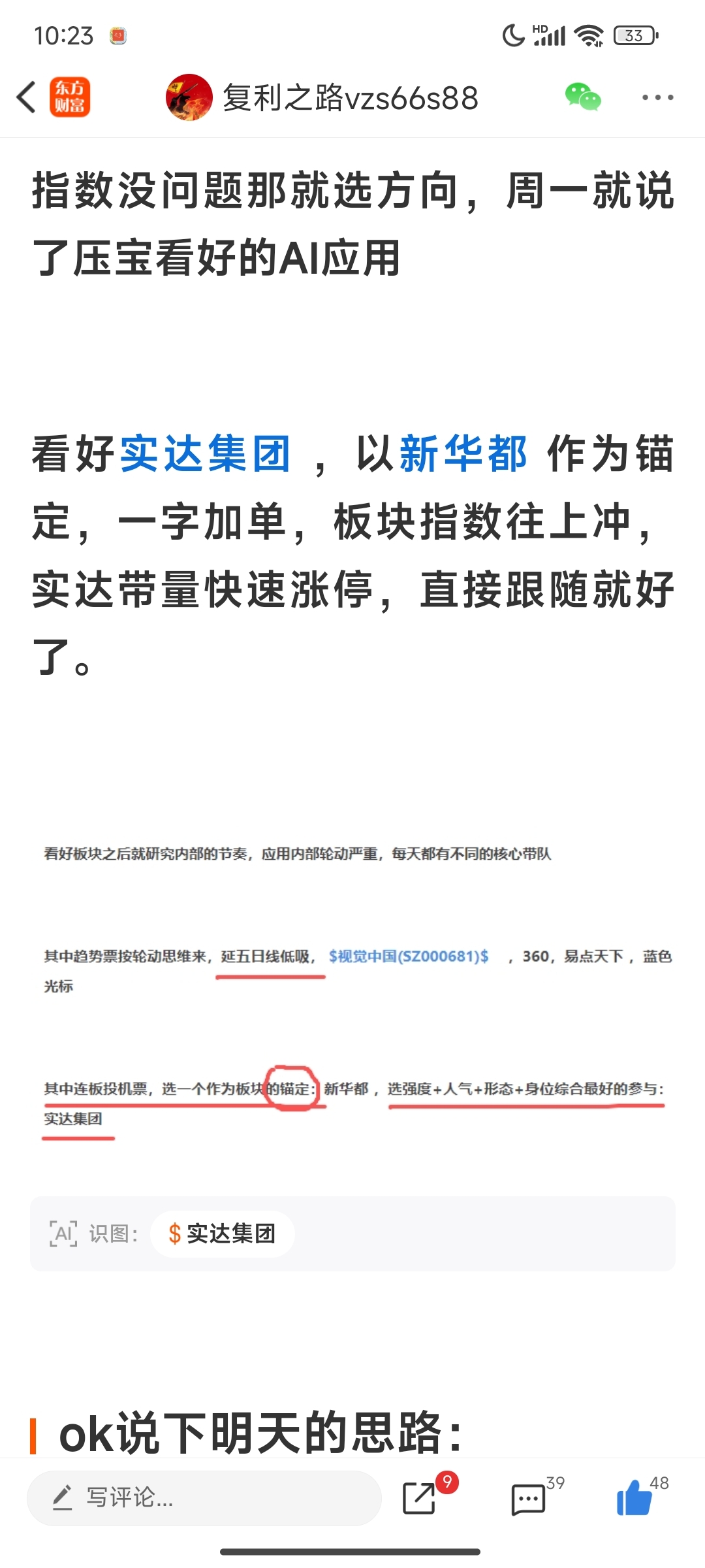 春江水暖,勤者先知,周一观测到一些市场止跌企稳信号,做了相对积极的策略,看好ai应用,关注$实达集团(SH600734)$ ,今天一个涨停躺赢,节奏还是挺舒服的