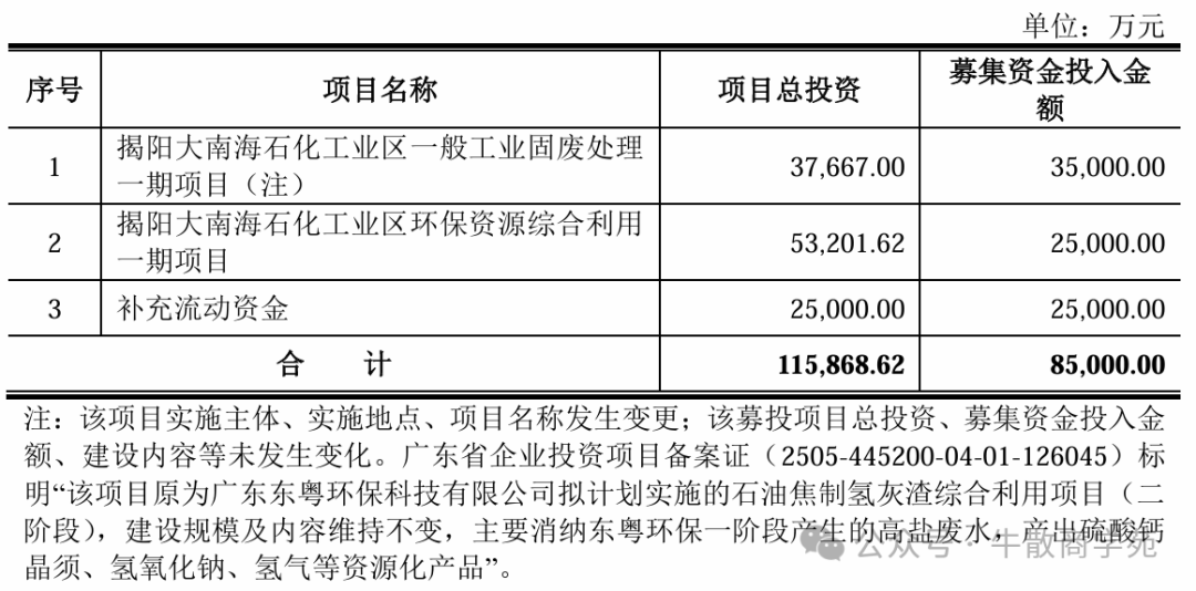 惠城环保(300779)本次向特定对象发行A股股票募集资金总额不超过85,000.00万元(含本数),在扣除发行费用后将应用于以下项目: