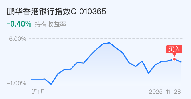 上车$鹏华中证香港银行指数(LOF)C(OTCFUND|010365)$5000元,港股银行的低估值和高股息的优势相对于A股的银行似乎更具吸引力,像香港银行指数持仓包含汇丰控股这种国际银行巨头,也有中资大型银行在香港上市的主题,整体的资产不良贷款率维持低位,资本充足率高。市净率方面,港股银行整体比A股还低20%,比如建设行业的H股不到0.5倍。另外港股银行的股息率超过了6%,也高于A股的红利方向。相对于存款的利息,3-5年只有1.3-1.5%而言还是香了不少。我准备拿一部分资金出来放香港银行里面做中长期的配置,今天上车5000元,准备收货稳稳的幸福。
