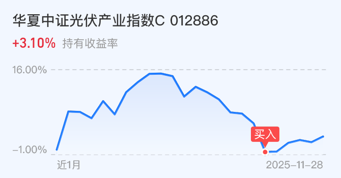 今天$华夏中证光伏产业指数发起式C(OTCFUND|012886)$ 1w万, 虽然近期光伏的表现多以震荡为主,但光伏经历了前三年的调整,目前的位置较低,且反内卷的政策持续推进,未来光伏产业格局将持续优化,供需也会逐步迎来拐点。另外我国的光伏产业技术迭代全球领先,已全面进入N型电池技术时代,TOPCon、HJT、BC三大路线并进,持续推动效率提升与成本下降,建立了绝对的成本和技术优势,随着海外人工智能热潮带来的缺电格局,光伏电池出海装机也有望持续增长。现在光伏的市净率处于2020年以来20%不到的百分位,安全边际也高。所以我今天继续上车华夏光伏 1W 布局!