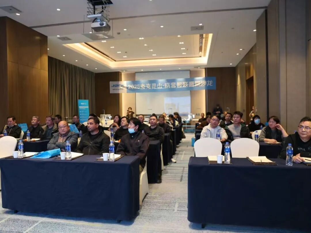 11月28日,2025杰克昆山成套智联高端沙龙圆满落幕。昆山区域40多位纺织服装行业同仁与合作伙伴齐聚一堂,围绕产业智能化转型趋势、成套创新解决方案及生产痛点破解等核心议题深入交流。