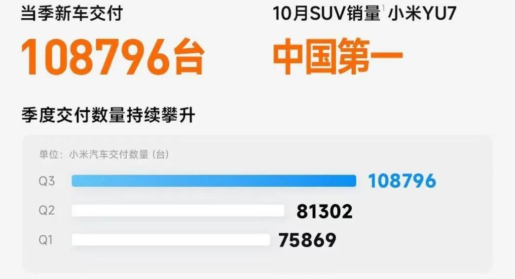 而跨界造车的小米,正迎来属于自己的“高光时刻”。该公司智能电动汽车及AI等创新业务分部三季度收入飙升199.2%至290.10亿元,单季首度盈利约7亿元。不仅如此,小米汽车三季度交付量达108796辆,直接实现了对理想的反超。