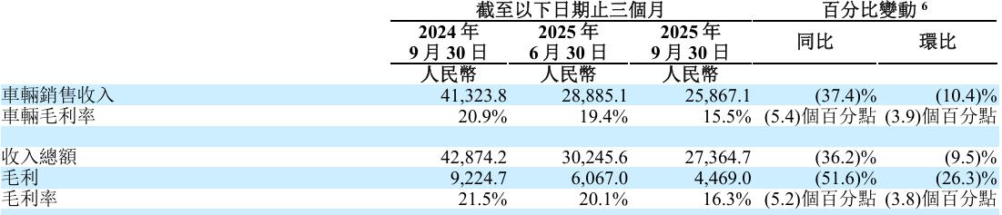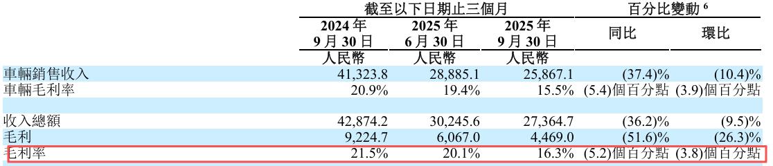 理想汽车在财报中表示,2025年三季度该公司的毛利为44.69亿元,整体毛利率为16.3%,车辆销售毛利率为15.5%;若剔除MEGA召回支出的影响,该公司的毛利率为20.4%,较2024年同期20.1%的毛利率略有提升。
