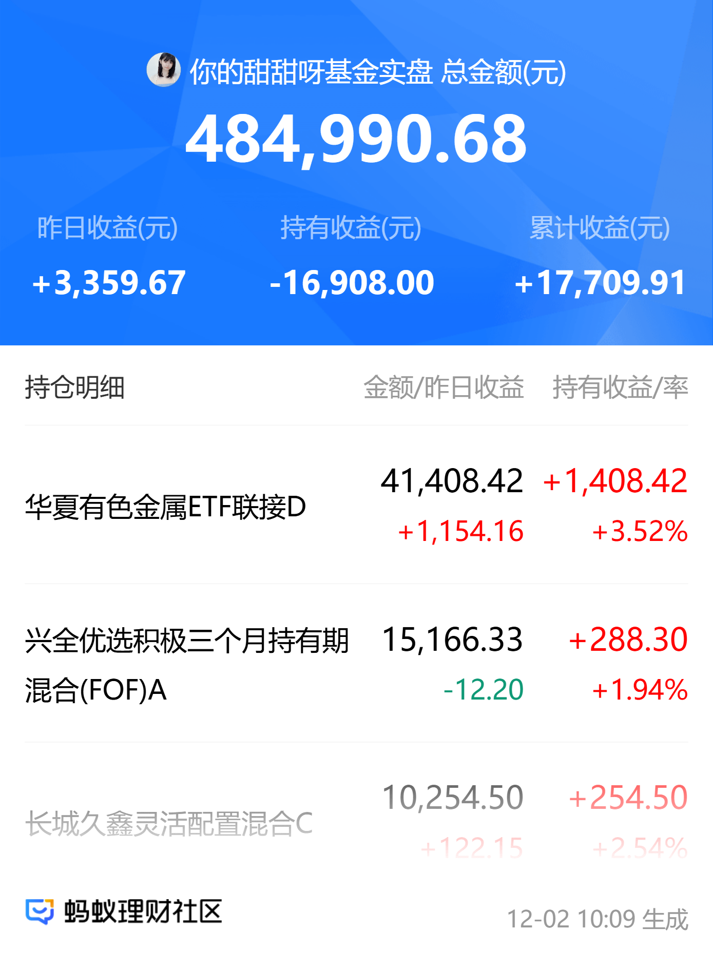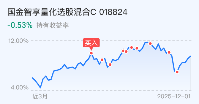 个人操作2:今天加仓量化基金,买入5000元$国金智享量化选股混合C$!前几个交易日市场开始反抽,这只量化基金的反弹修复速度非常给力,一转眼我的持仓都要再度翻红了,没什么问题!这只基金是我今年重点布局的方向之一,马芳经理的量化基金我有买过很多,表现都是非常优秀的,有的还限购了,毕竟量化策略是很不错的,去劣存优,尤其是会剔除一些已经消耗过太多涨幅了,侧重于留下启动前的好股票,并且业绩什么的都有保障,所以才能实现长线稳定增值,抗风险浮动能力通常也做的不错,今天正好市场调整,属于趋势当中的良性回调,我补一笔。