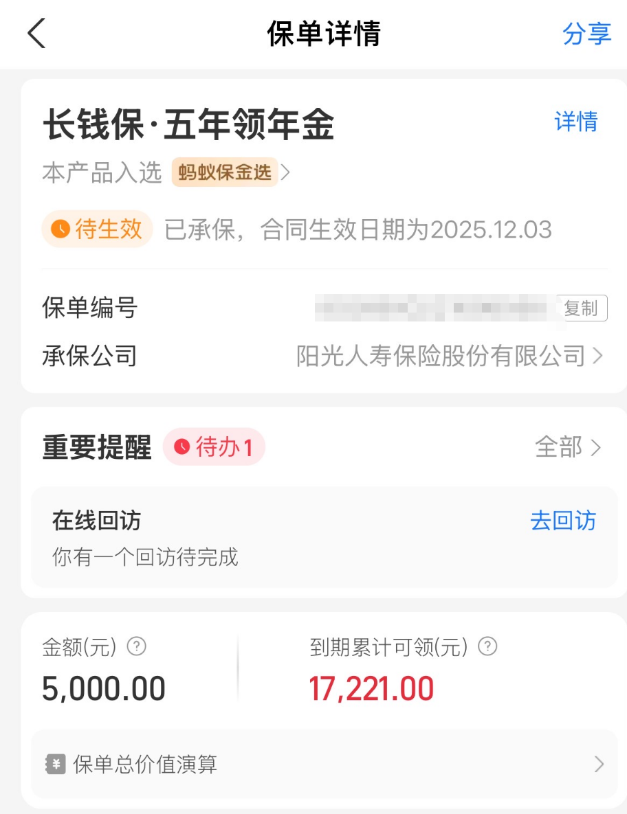 在操作基金之前,今天先配置了一笔长钱保·五年领年金。现在生活压力大,不少年轻人都梦想着躺平,如果什么时候能够靠利息月入3000就好了,按照现在这么低的银行利率,以前100万或许就可以,而现在至少得有个300w,只能说储蓄的性价比有越来越低了。那么有没有什么方法能够相对快速的实现资产稳定增值呢?