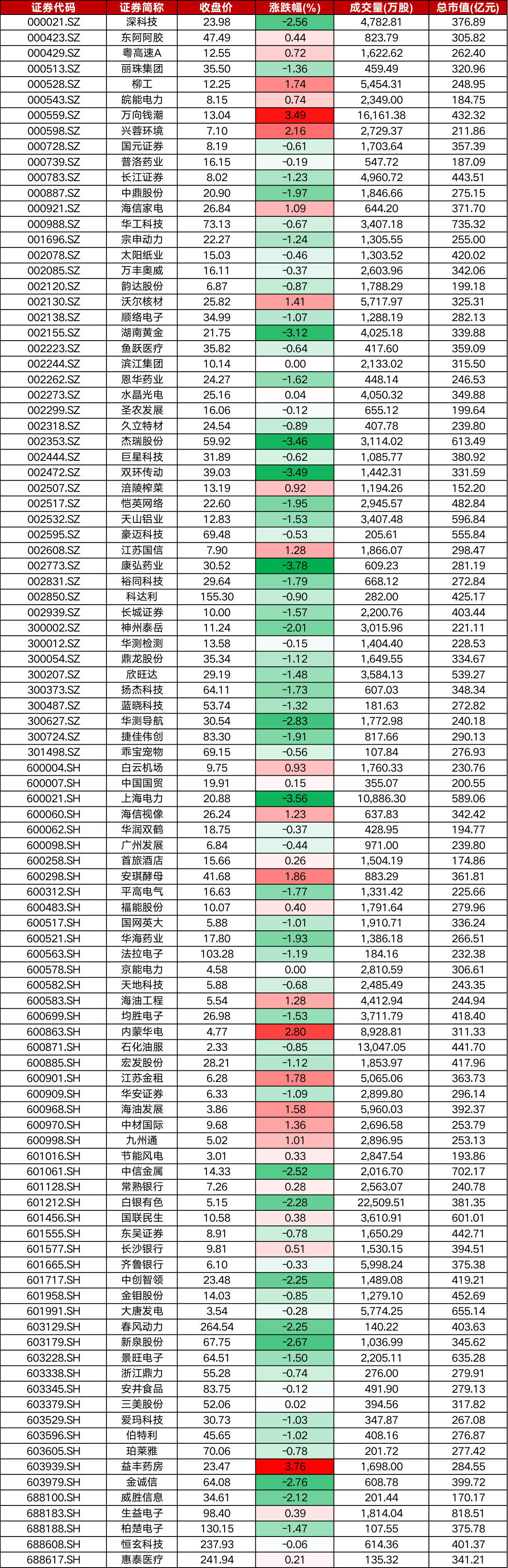 截至收盘,沪指跌0.42%,深成指跌0.68%,创业板指跌0.69%。沪深两市成交额1.59万亿,较上一个交易日缩量2805亿。板块方面,福建、食品、医药商业等板块涨幅居前,能源金属、有色金属、影视院线等板块跌幅居前。