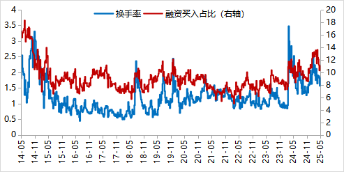 风险偏好回升:日均换手率下降至1.57%;全A成交降低至1.5万亿下方,融资交易占比被动升至11.04%,各项指标小幅企稳。