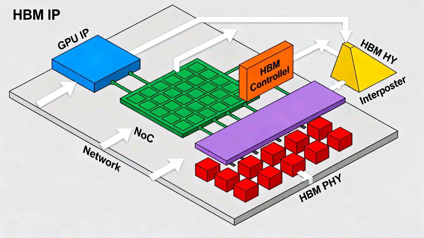 (4)IP核与控制:HBM IP、PHY、时钟/电源管理、安全模块 。