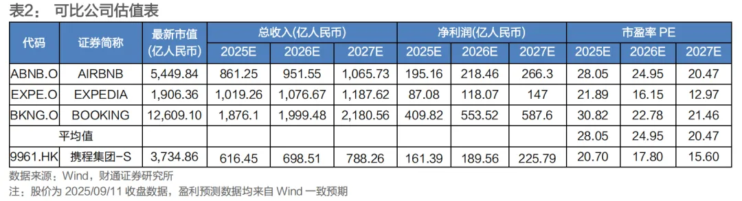 与国际同业相比,携程的估值颇具吸引力。当前股价对应2025年预测市盈率约为20倍,而Booking和Airbnb的估值均超过28倍。