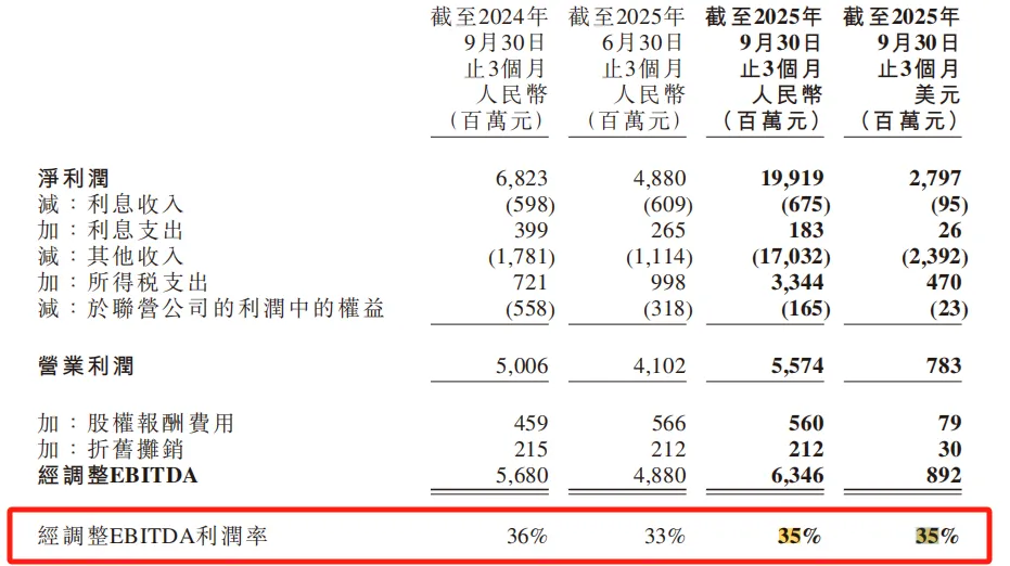更值得关注的是反映企业持续盈利能力的核心指标:经调整EBITDA利润率保持在了35% 的高位。