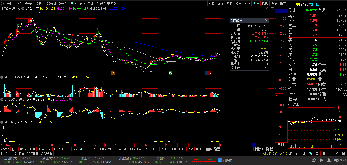 潜力榜-1:002496 *ST辉丰