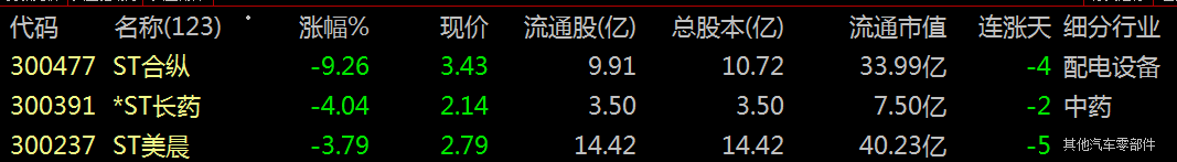跌幅榜-3:300237 ST美晨