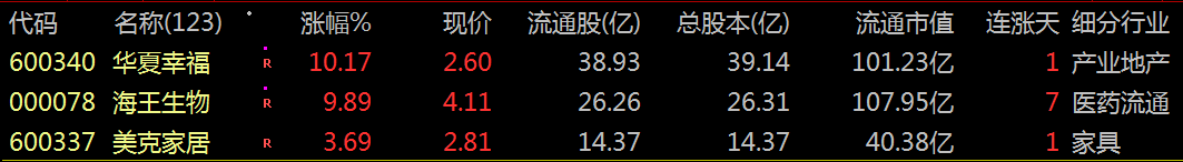 1、涨幅榜眼:处排查摸