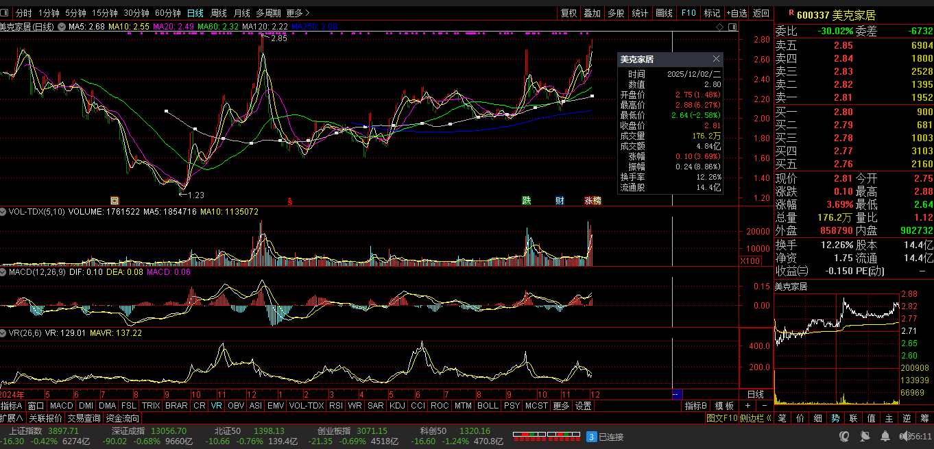 涨幅榜-3:600337 美克家居