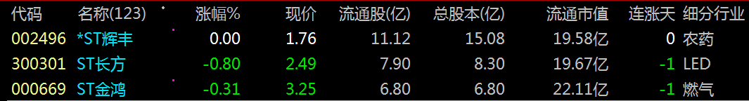 002496 *ST辉丰 300301 *ST长方 000669 ST金鸿