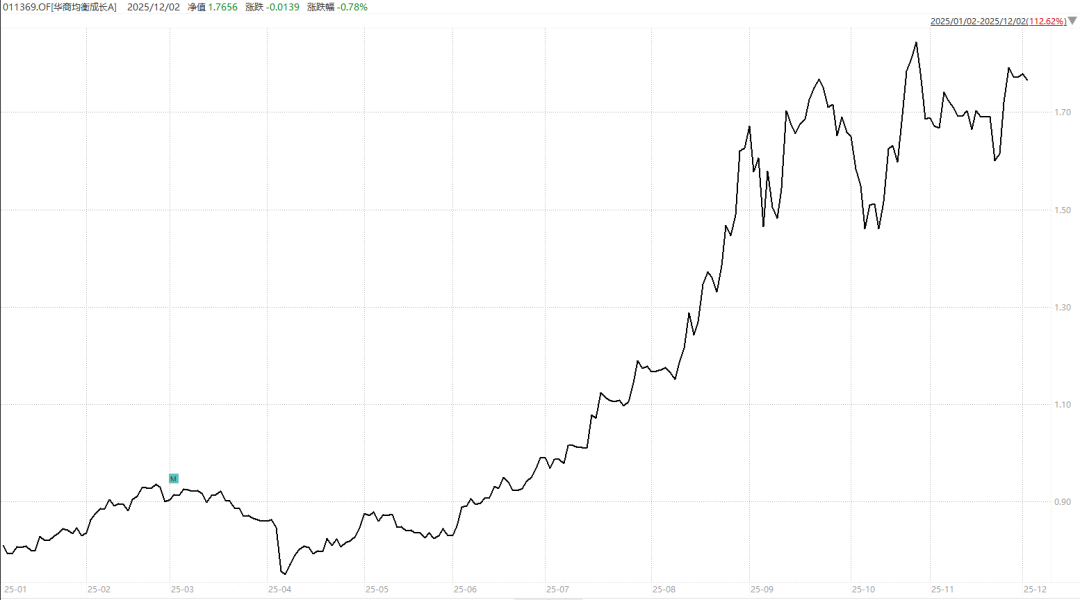 华商基金的张明昕对这一点很有发言权。他在管的$华商均衡成长混合A(OTCFUND|011369)$年内实现了112.62%的翻倍涨幅(数据来源:Wind;统计区间:2025.1.2-2025.12.02),成为年内市场当之无愧的“明星基”。