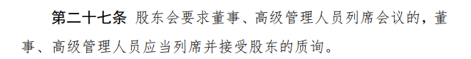 第二十七条修改,新增“接收股东的质询”,更加规范。