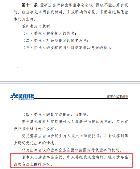 第十二条新增红框事项,不出席也不委托的,视为弃权。