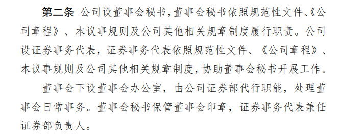 整体来看,董事会议事规则主要新设了一个证券事务代表,由证券部代替董秘进行日常工作,想到前几天阿刚同志去了中原证券,不知道是不是这个原因。