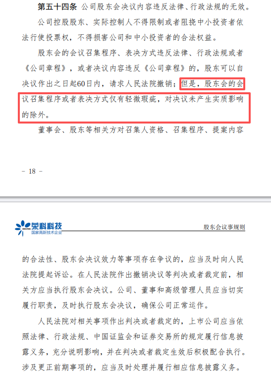 第五十四条大修,重点突出轻微瑕疵不影响决议。