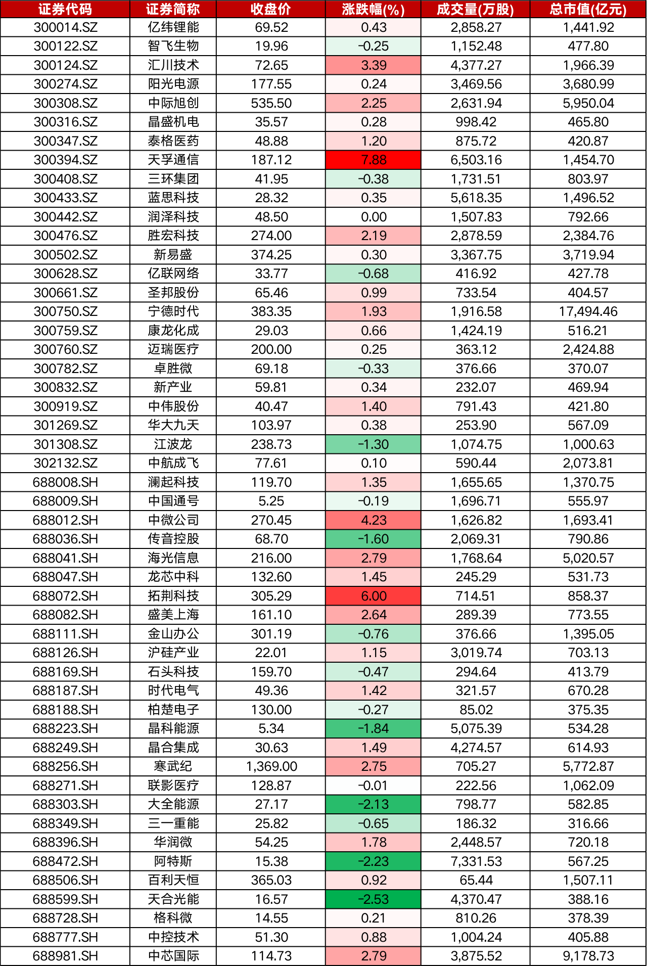 今日成分股天孚通信、拓荆科技涨幅居前。