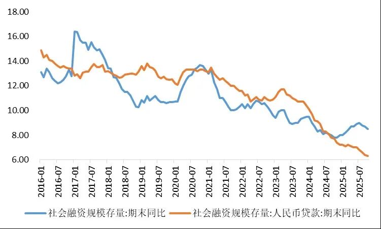 数据来源:wind 其次,10月份社融同比少增近6000亿,主要受信贷(需求不足)和政府债(财政错位)的拖累,企业债和非标有一定拉动。信贷方面,企业贷款主要是票据融资在增长,短贷和中长期贷款均偏弱,虽然总量同比多增,但结构不佳。居民贷款较9月份净减少3600亿,同比少增5200亿,有去年924政策后,10月同期购房热度增加带来的高基数影响,但更多还是反映需求偏弱,与10月份地产销售表现较一致。存款方面,10月份居民存款减少1.34万亿,同比多减7700亿,正好对应非银存款的同比多增,与“存款搬家”流入权益和理财有关。 图3 10月社融延续结构分化特点